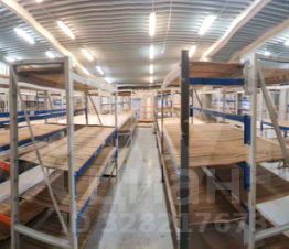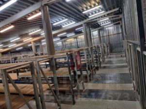 Склад находится на 3-м этаже административно-складского здания. Для подъема и спуска товара есть два грузовых подъемника грузоподъемностью по 1 тонне — они работают между первым и третьим этажами, поднимают стандартные евро-паллеты.