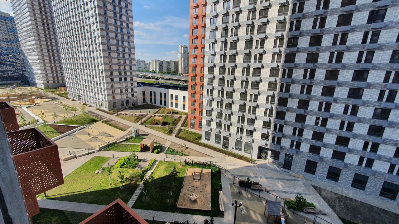 Кухня, 2х спальная кровать, душевая кабина, стиральная машина, микроволновка, холодильник. Восточная сторона- солнце не печет.