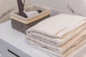 - Санузел совмещённый, ванна. В ванной комнате: для каждого гостя полотенце, тапочки, зубной набор, шампунь, гель для душа. Стиральная машина.