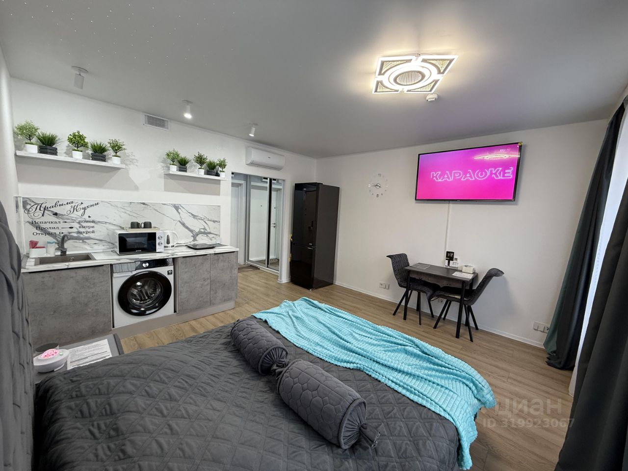 (3840x2160 Пикс), кондиционер, WiFi, стиральная машина, микроволновка, эл плита, чайник, холодильник, фен, посуда, чай, кофе, моющие и чистящие средства, пышное полотенце 70*140, чистое и свежее постельное белье