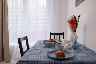 - Вместимость до 4 гостей (двуспальная кровать + раскладной диван)