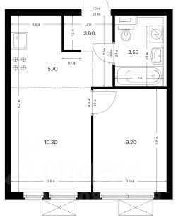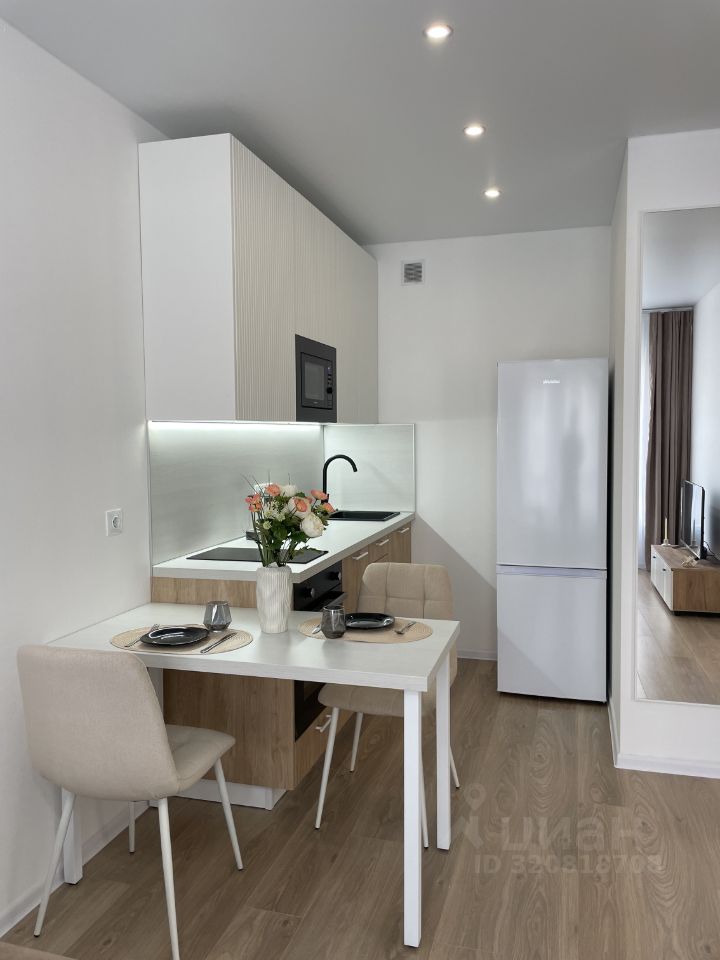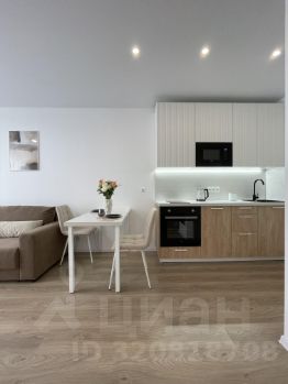 Уютная квартира с просторной кухней-гостиной, спальней, выделенной рабочей зоной и смежным санузлом.