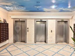 Дом - монолитный, окна выходят на улицу. Есть консьерж. В подъезде 3 лифта - 3 грузовых и 0 пассажирских. Есть подземная парковка.