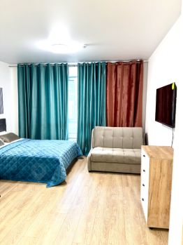 В квартире есть все необходимое для комфортного проживания : большая двухспальная кровать с ортопедическим матрасом, двухспальный диван плазменный телевизор СмартТВ безлимитный вай фай В кухонной зоне обеденный стол со стульями, холодильник, индукционная плита, вся необходимая утварь для приготовления ужина и завтрака Студия оснащена современной бытовой техникой ( стиральная машина, утюг, гладильная доска сушилка, фен) Для наших гостей мы бесплатно предоставляем Комплект полотенец для каждого гостя белое постельное белье. Средство гигиены