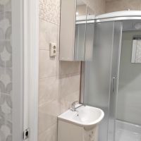 Две отдельные спальные зоны (двуспальная кровать и угловой диван-кровать). Холодильник, стиральная машина, духовой шкаф, варочная панель, вытяжка, микроволновая печь, чайник, утюг, кондиционер, смарт-тв. Посуда, кухонные принадлежности, 2 кастрюли, сковорода, тарелки, кружки, ложки, вилки. Кабельное ТВ (169 каналов) и интернет (кабельный и вайфай). Стол-крижка, два стула, комод, прикроватная тумбочка. Большой встроенный шкаф. В санузле, коридоре и кухонной зоне -электрические тёплые полы. На окне рулонные шторы блэкаут и тюль. Спальные принадлежности (2 подушки, 2 одеяла, 1 комплект постельного белья).
