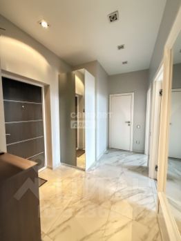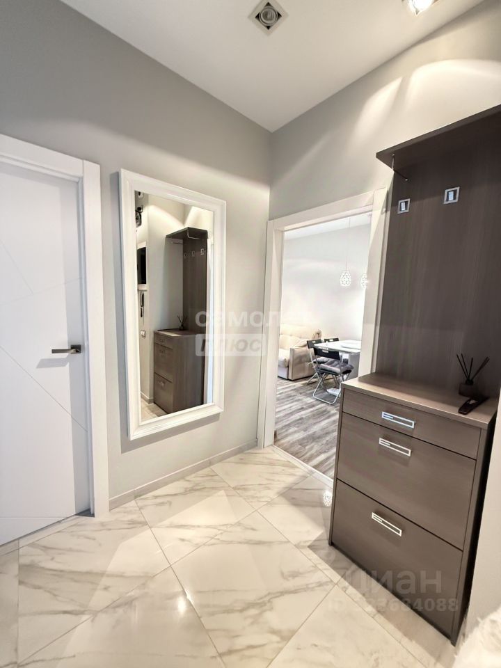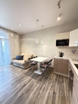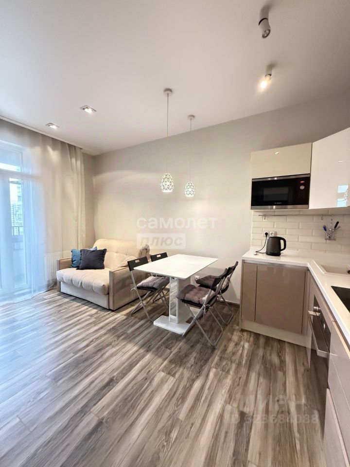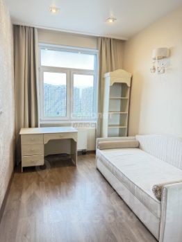 2-к. квартира с кухней-гостиной на 17 этаже с евроремонтом, полностью укомплектованная мебелью и техникой для комфортного проживания: кухонный гарнитур со встроенной техникой, холодильник, стиральная машина, диван, кровать с ортопедическим матрасом, стол, стулья, телевизор, корпусные шкафы на заказ. В ЖК есть подземный паркинг.