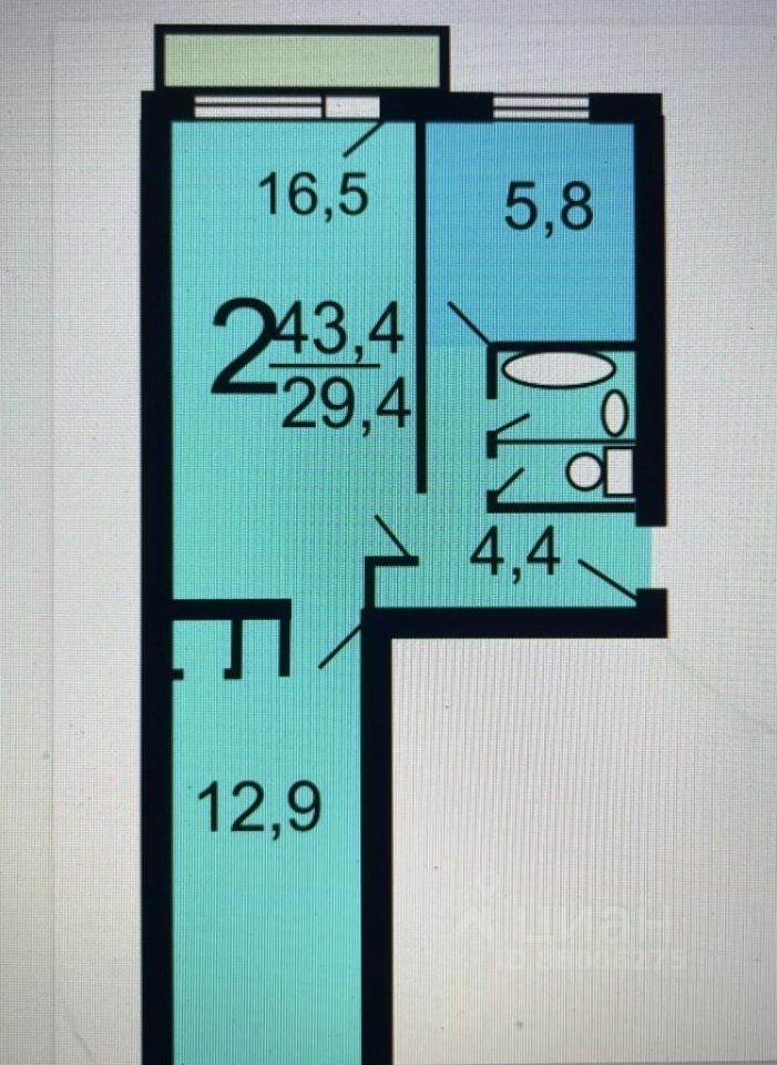 43,4 м²
