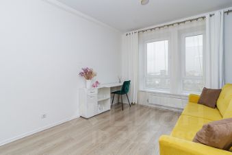 В квартире тепло и уютно, спокойные соседи. По вечерам открывается замечательный вид на закат.