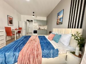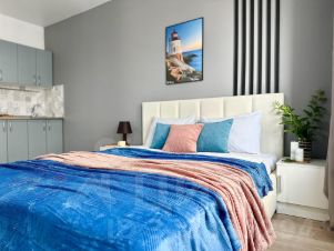 - Полноценная кухня (электроплита, духовка, холодильник, микроволновка, чайник)