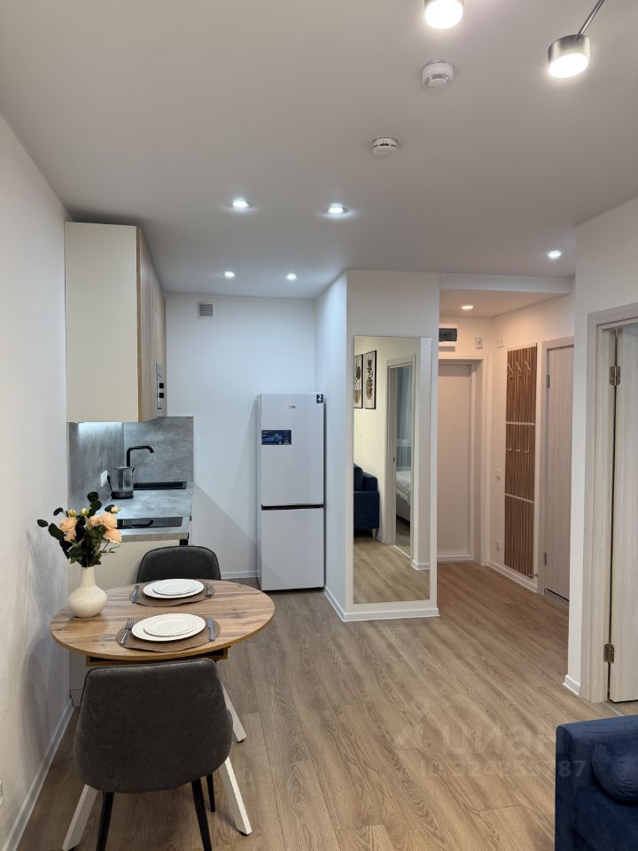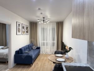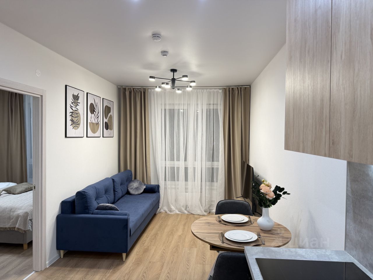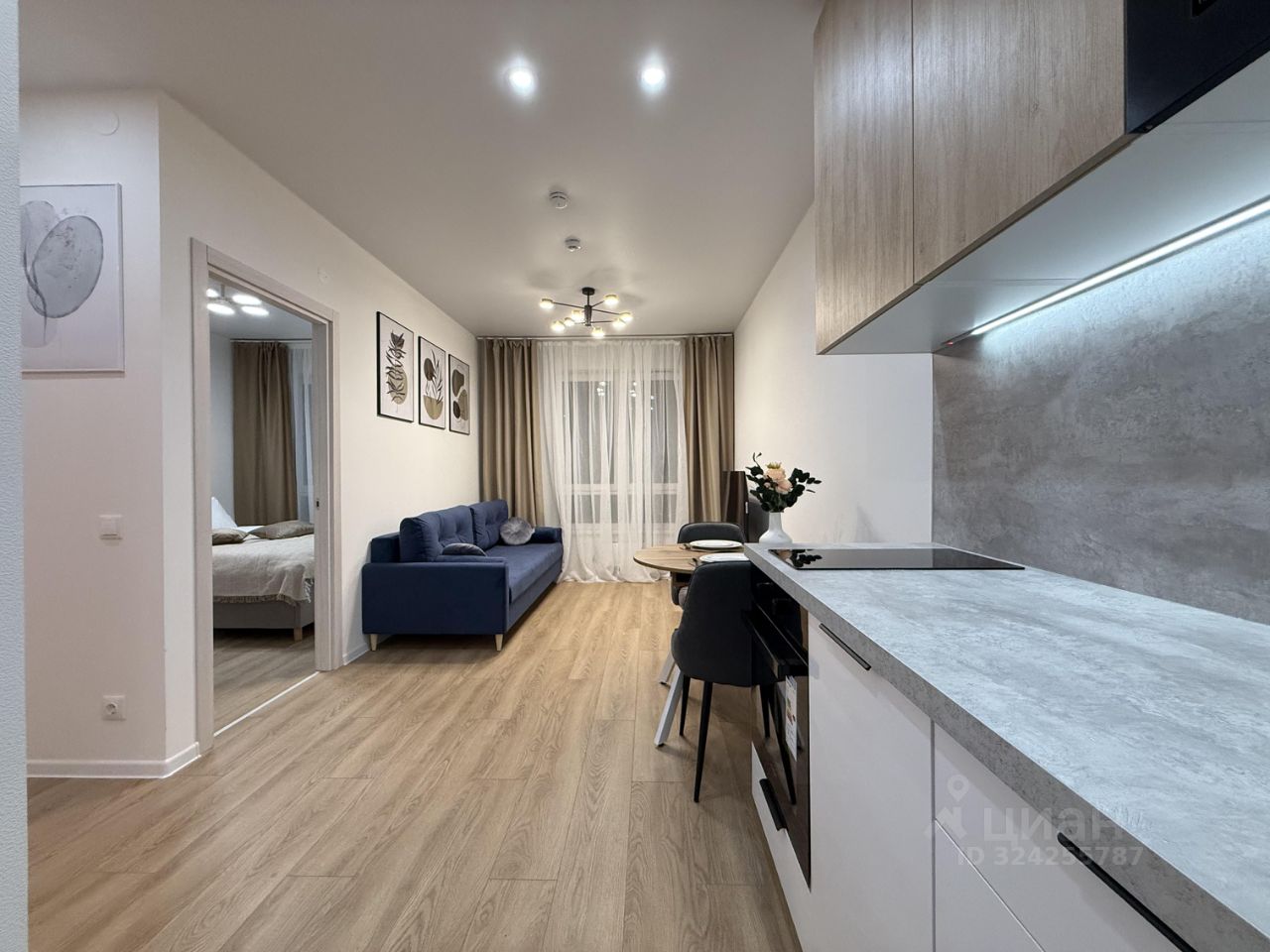 Уютная квартира с просторной кухней-гостиной, спальней и смежным санузлом.