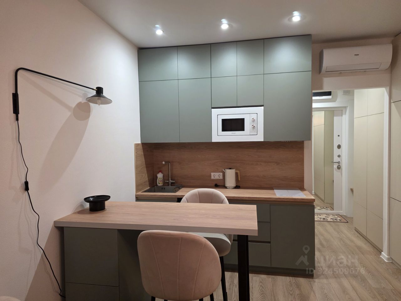 Есть закрытая территория, зеленый район рядом с парком. Квартира сдается впервые, общая площадь 21 кв м.