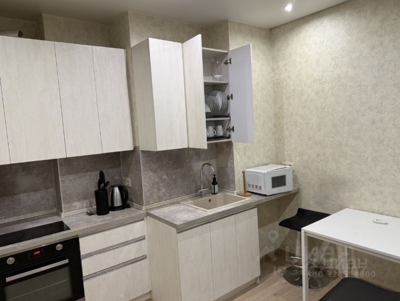 Квартира полностью готова для комфортного проживания. В комнатах и на кухне есть вся необходимая мебель. Для вашего удобства в квартире установлены кондиционер, холодильник, телевизор и стиральная машина. Прихожая совмещена с кухней. Совмещённый санузел оснащён душевой кабиной. Есть балкон.