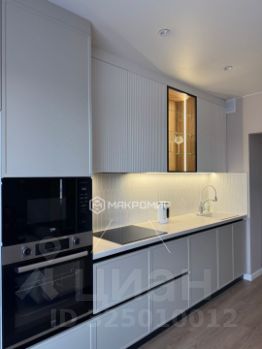 Практичная кухня на заказ. Вся встроенная техника: духовой шкаф, микроволновка, посудомоечная машина, холодильник, в смесителе стоит фильтр для воды.