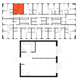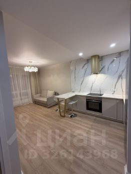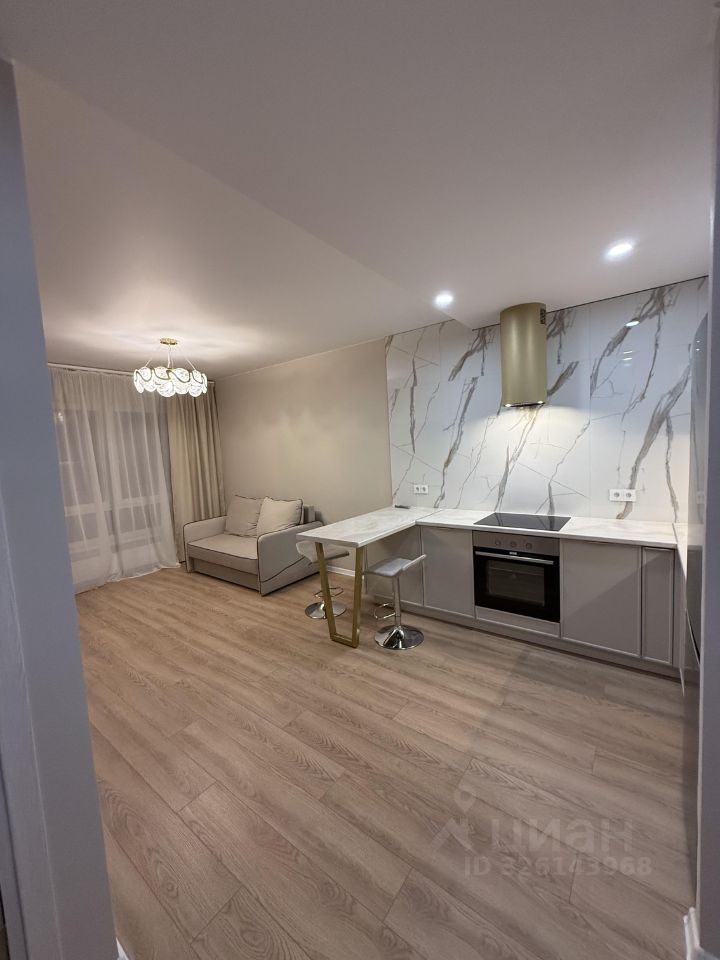 Планировка: Изолированная спальня, гостиная-кухня, прихожая, санузел. Из окон — вид на благоустроенный ЖК.