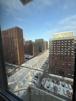 Вид из окна — на ухоженный ЖК, а не на дорогу. Камерная, спокойная атмосфера.