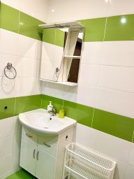 В квартире есть все, что нужно для комфортного проживания: двуспальная кровать, раскладной диван, телевизор, WiFi, стиральная машина, микроволновая печь, электрический чайник, постельное белье.
