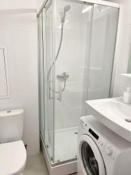 В квартире есть все, что нужно для комфортного проживания: двуспальная кровать, телевизор, WiFi, стиральная машина, микроволновая печь, электрический чайник, постельное белье.