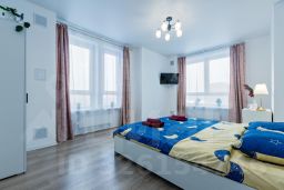В каждой квартире есть все, что нужно для комфортного проживания: спальные места, постельное белье и полотенца, посуда, микроволновка, телевизор, Wi-Fi, гигиенические и гладильные принадлежности, стиральная машина, холодильник, фен.