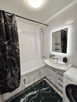 Ванная комната совмещенная, оборудована современной сантехникой и стиральной машиной.