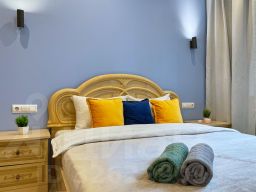 В апартаментах 4 спальных места: двуспальная кровать, раскладной диван. К услугам гостей: WI-FI, кaбельнoe ТV, плaзмeнный телевизоp в кoмнате, свежее постельное белье и чистые полотенца, гигиенические принадлежности. В апартаментах есть просторная застекленная лоджия.