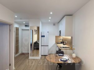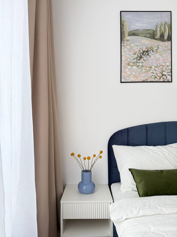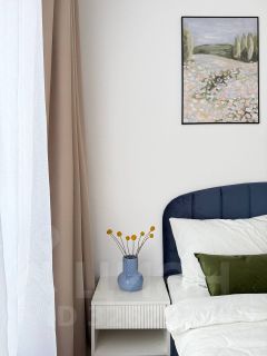 Уютная кваpтиpа с проcторной кухнeй-гоcтиной, cпальнeй и смежным санузлoм.
