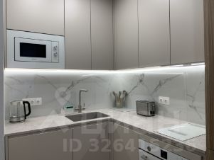 В зоне кухни расположен кухонный гарнитур по индивидуальному заказу, вся техника встраиваемая: вместительный холодильник, посудомоечная машина, индукционная варочная панель, духовой шкаф, микроволновая печь, вытяжка с угольным фильтром, также имеется чайник, тостер, столовые приборы, набор посуды для приготовления, к крану подключена система обратного осмоса для питьевой воды.