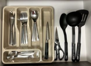 Кухня: индукционная плита, микроволновка, чайник, холодильник, новая посуда, чай, сахар, масло.
