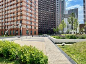 Территория ЖК закрытая, охраняемая с видеонаблюдением, без машин, с детскими и спортивными площадками. Рядом Кузьминский лесопарк (3 мин) — прогулки, белочки, зимой лыжи.