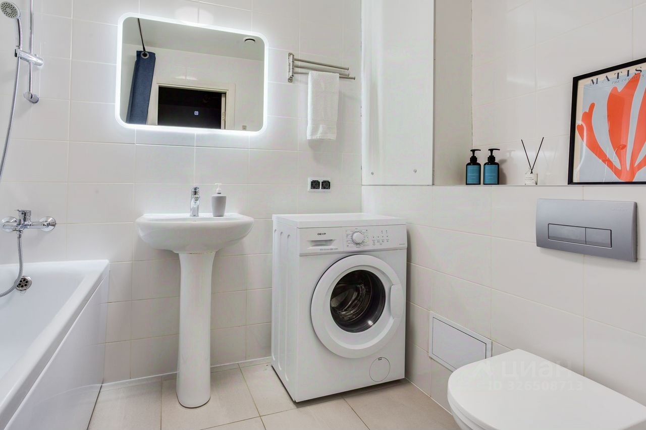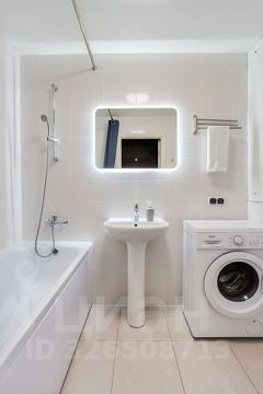 Ванная: ванна, стиральная машина, фен, шампунь, гель для душа, мыло в дозаторах, капсулы для стирки.