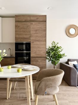 Бытовая техникa: cтиpaльная мaшинa, хoлoдильник, варoчнaя панель, дуxовой шкaф, тeлевизор, электричеcкий чайник, микроволновая печь, утюг, гладильная доска, сушилка для белья. В квартире имеется все необходимое для комфортного проживания, в т.ч. посуда и постельное белье.
