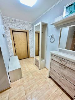 Квартира полностью готова к комфортному проживанию: установлена вся необходимая бытовая техника, оборудованная кухня с удобной рабочей зоной и обеденной зоной.