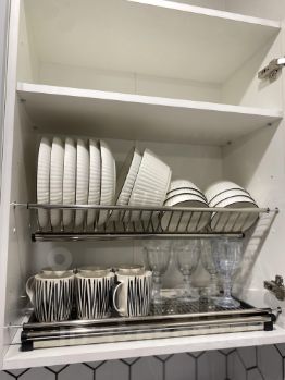 В нашей квартире стоит полноразмерная кровать с ортопедическим матрасом и подъемным механизмом с дополнительным местом для хранения. Телевизор со Смарт ТВ и WI-FI, микроволновка, беспроводной пылесос, утюг, сушилка, гладильная доска. Несколько больших шкафов для хранения.