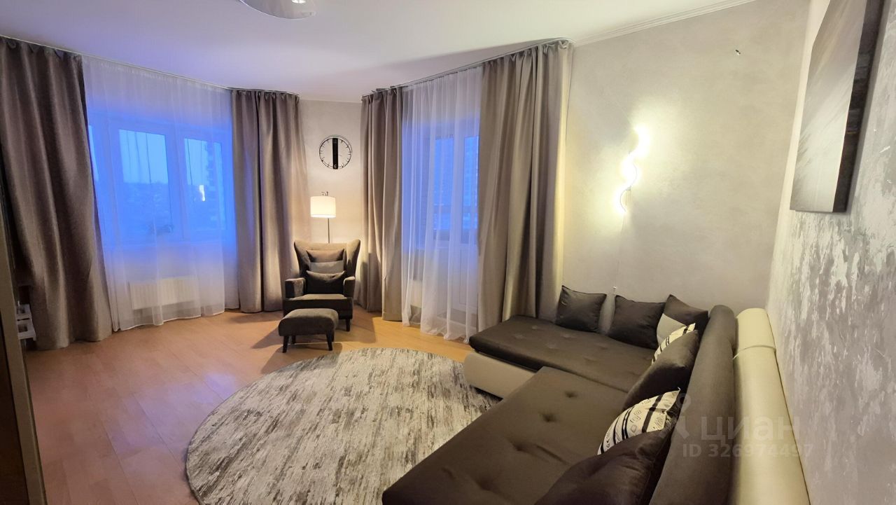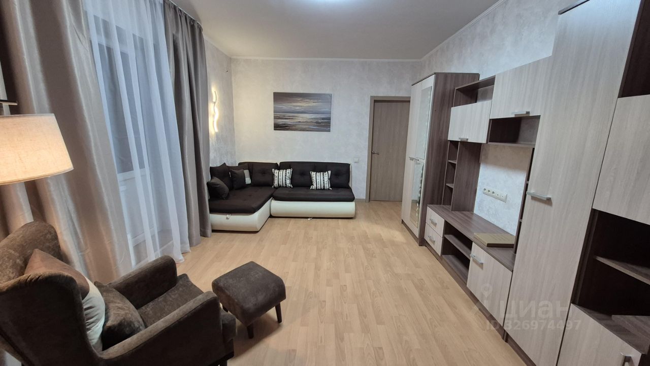 В гостиной двуспальный диван, вместительная стенка и рабочее место. В спальне есть кровать, платяной шкаф, кресло качалка. . Во всех комнатах шторы полный блэкаут. Площадь комнат: 19 кв.м и 18,5 кв.м., кухня 15 кв.м, санузел раздельный.