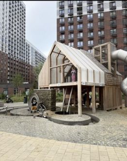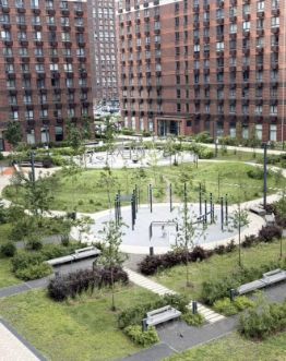 Перед домом — 800метровый пешеходный бульвар с PlayHub Ферма: крупнейшим игровым пространством квартала, победившим во Всероссийской премии лучших проектов создания игровой среды (2024).