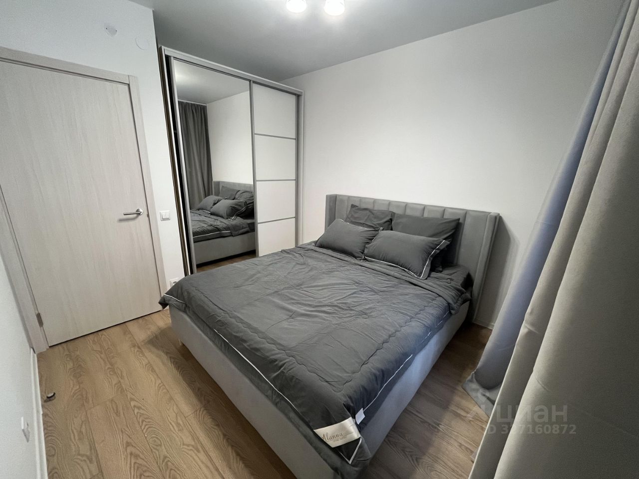 Также есть вся необходимая мебель: распашной шкаф, раскладной диван, шкаф-купе, двуспальная кровать, прихожая, кухонный гарнитур, обеденный стол со стульями, диван.