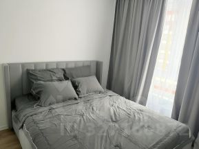 В квартире также есть чайник, утюг, посуда, столовые приборы, подушки, одеяла, постельное белье, кастрюли, сковородки. Все новое.