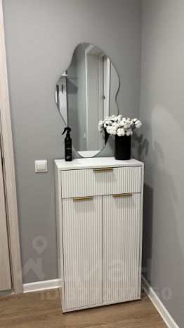 В квартире раздельный санузел с ванной и стиральной машиной. В прихожей предусмотрены удобные шкафчики для хранения вещей.