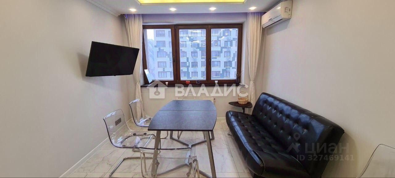 Квартира общей площадью 78 кв. м на 18-м этаже 24-этажного кирпично-монолитного дома, построенного в 2016 году.