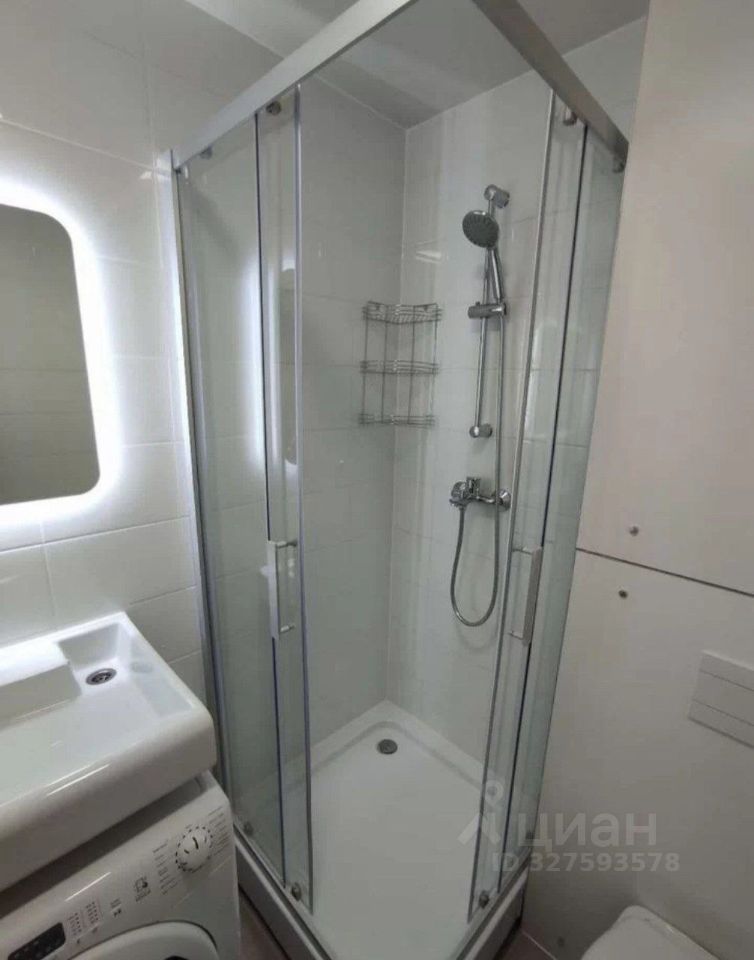 Кухня оборудована всем необходимым: встроенная варочная панель, духовой шкаф, современный холодильник и вытяжка. Из мебели — удобный диван, стол, стулья и шкафы. В ванной комнате установлена душевая кабина и стиральная машина.