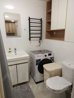 В квартире совмещённый санузел, в котором установлены: встроенный шкаф, электрический полотенцесушитель, потолочная сушилка для белья, зеркало с подсветкой.
