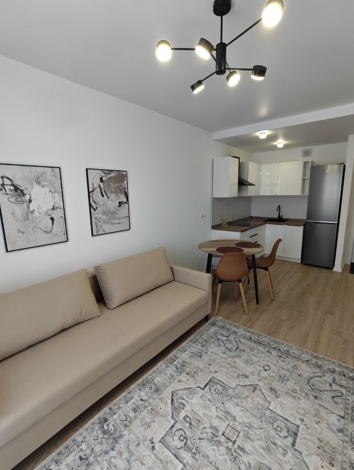 • Кухня-гостиная: современный гарнитур со встроенной посудомоечной машиной и индукционной плитой. Обеденный стол раскладывается. Комплектация кухни-гостиной соответствует фотографиям в объявлении.