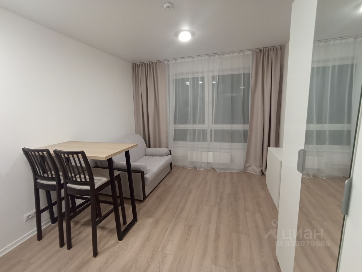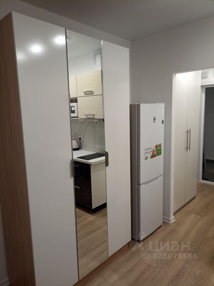 В квартире есть всё необходимое для комфортного проживания: современная мебель на кухне и в комнате, холодильник, стиральная машина и интернет. Планировка студии позволяет максимально эффективно использовать пространство. В ванной комнате установлена душевая кабина, что особенно удобно для быстрого утреннего душа.