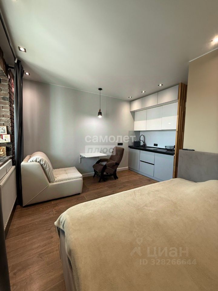 Студия меблирована, а современный интерьер создаёт атмосферу уюта и комфорта.