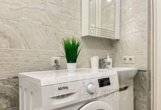 Ванна, стиральная машина, сушилка для белья, утюг, фен, тапочки, гель для душа, шампунь. Уборка, бельё и полотенца включены в стоимость.