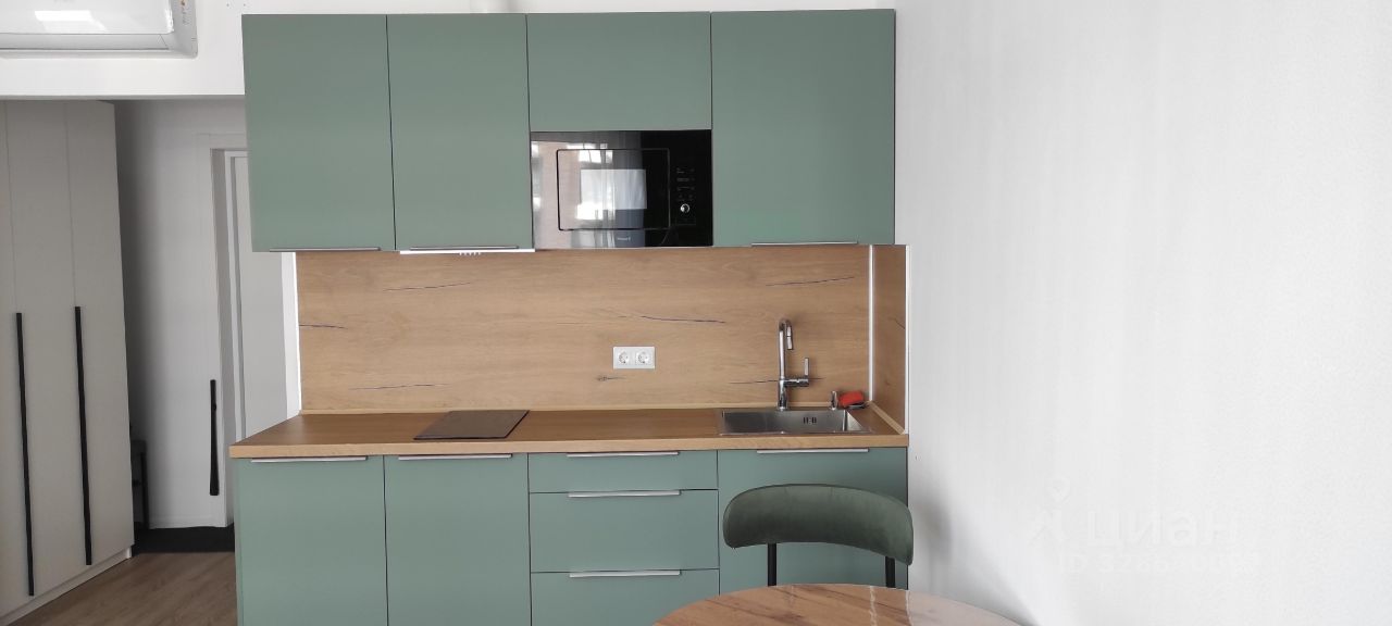Кухня с встроенной техникой (СВЧ, варочная панель, вытяжка).