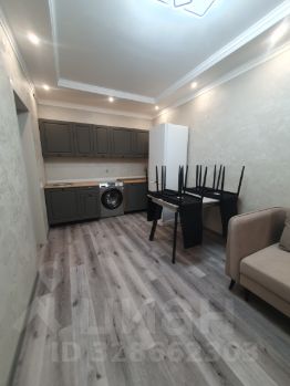 В квартире сделан современный евроремонт. На кухне площадью 18 кв. м есть вся необходимая мебель и техника: кондиционер, холодильник и стиральная машина. Обустроенная ванная комната с ванной и совмещённым санузлом. В комнате и на кухне также есть мебель, поэтому можно сразу заехать и жить.