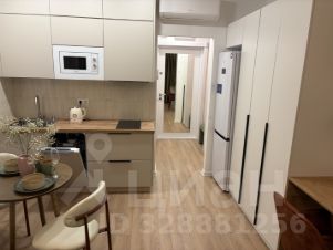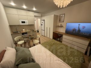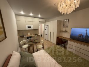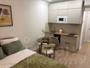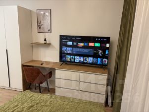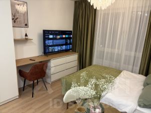 Сдается стильная студия с современным ремонтом в монолитном доме 2025 года постройки. Просторная жилая зона включает в себя уютную спальню с двуспальной кроватью и рабочим местом. Шкафы обеспечивают достаточно места для хранения вещей.