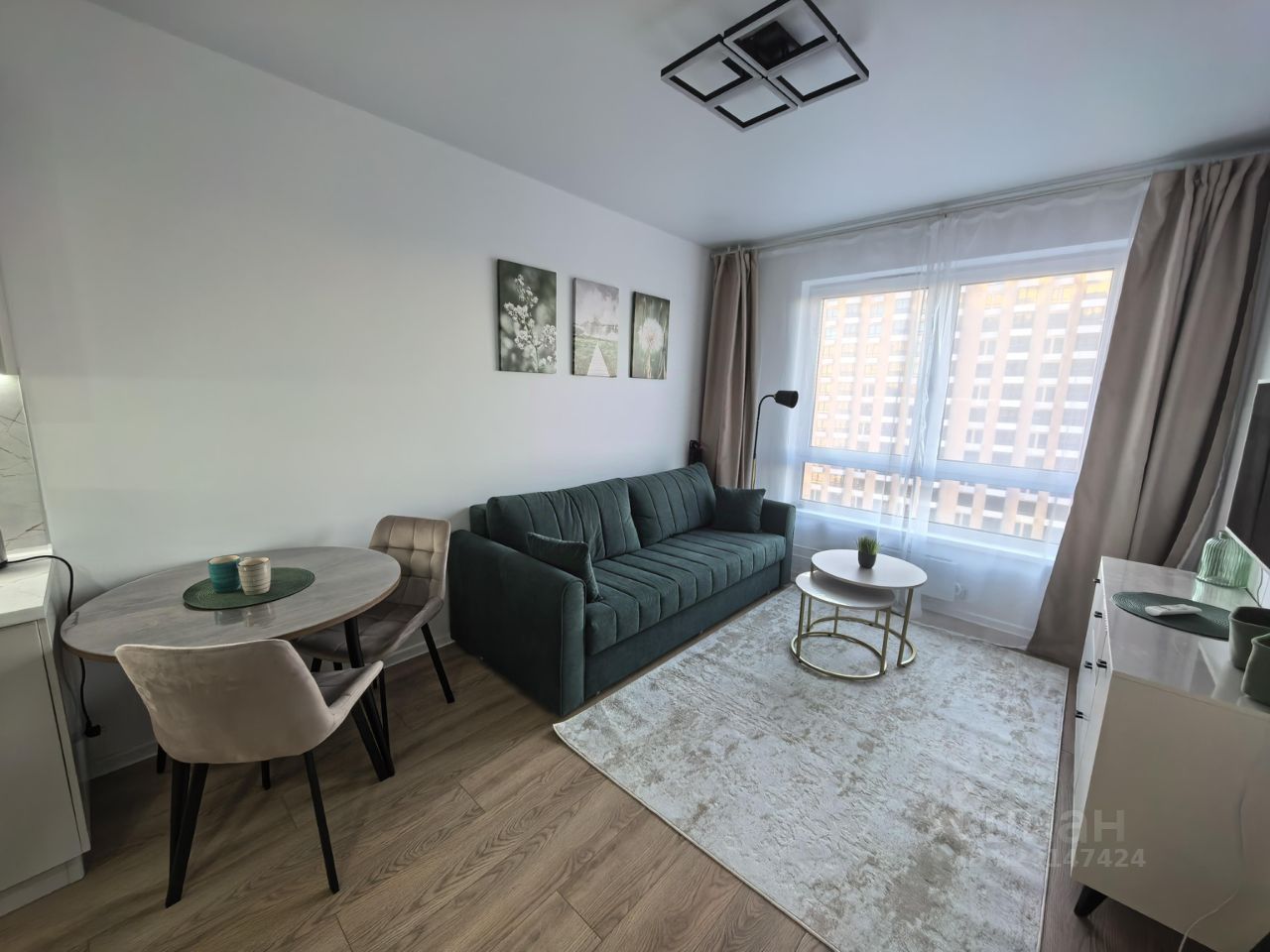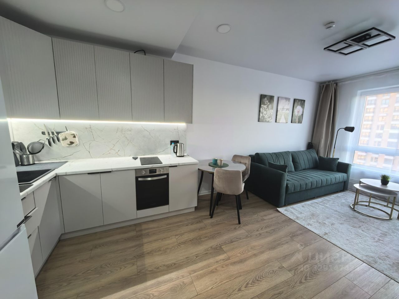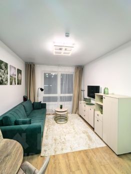 Сдаётся на длительный срок уютная евродвухкомнатная квартира 36 м² на 17 этаже. Формат: кухнягостиная и отдельная спальня, совмещённый санузел.