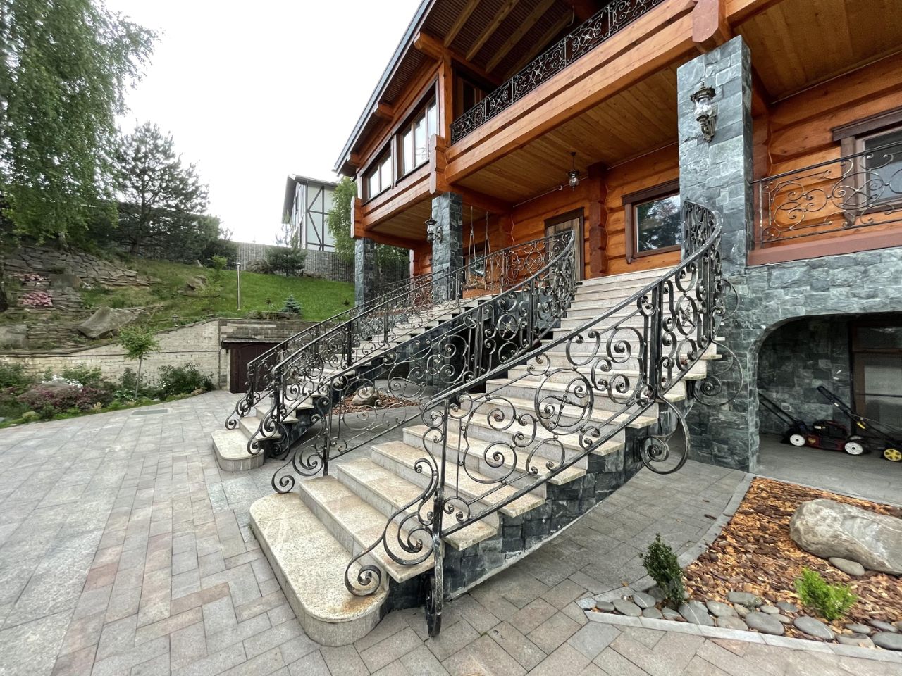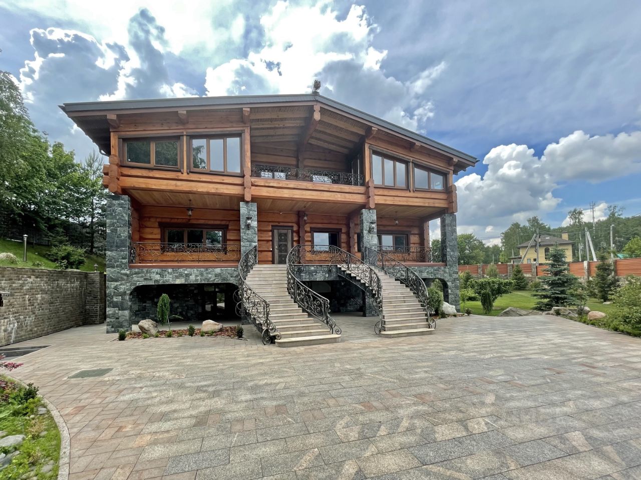 Новый 3х-этажный дом площадью 696 кв. м. Высокий цокольный этаж из керамических блоков. Первый и второй этажи дома - лафет сибирского кедра. Средняя высота бревна в стенах дома достигает 600 мм.