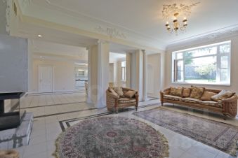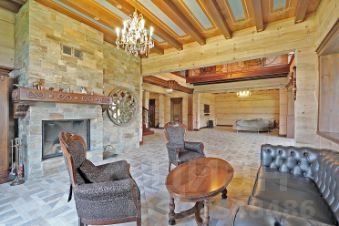 Ценные породы дерева в отделке. Художественная ковка и бронзовое литье; отделка окаменевшим деревом. Теплые водяные полы. Две камина. Высота потолков на всех этажах дома не менее 3 м 50 см, в холле с 2м светом высота потолка 8 м.